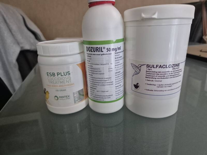 Enkele veelgebruikte middelen voor de behandeling van coccidiose. Raadpleeg steeds een dierenarts voor gebruik!